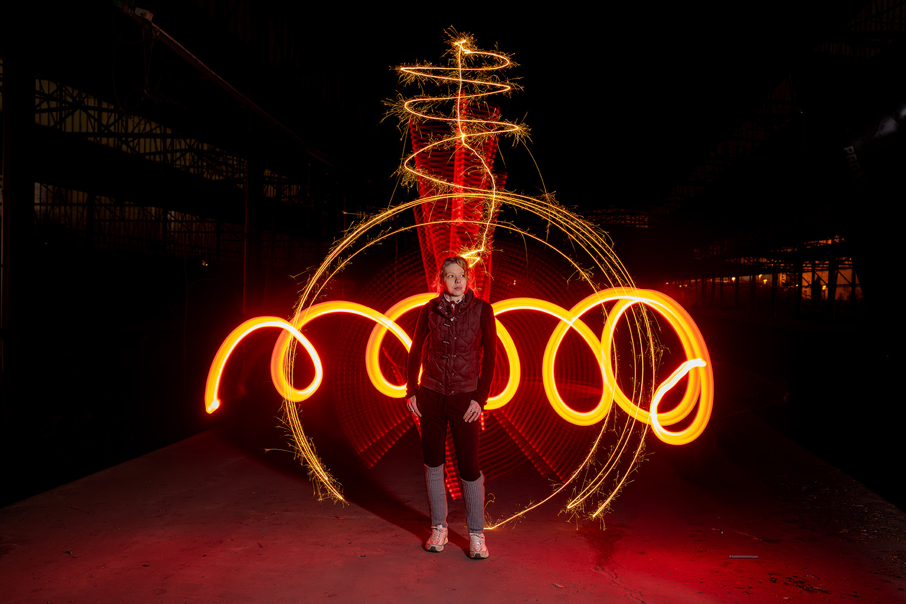 Light Painting am Güterbahnhof Herne mit Michelle